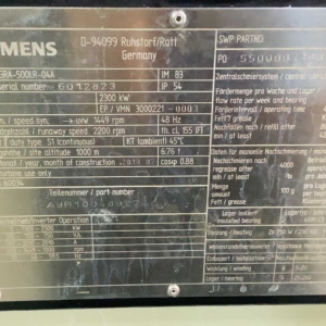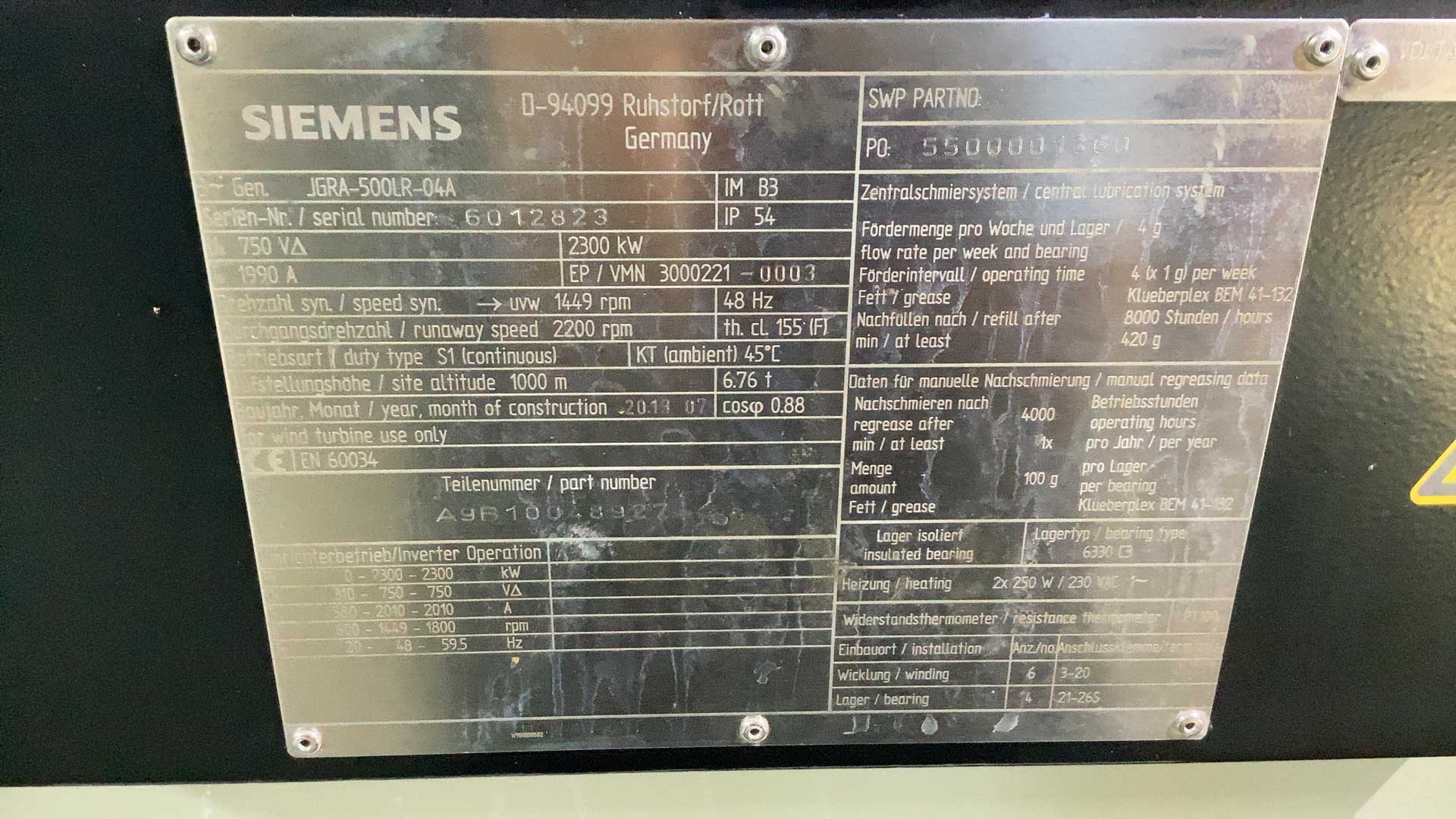 SIEMENS/LOHER 2.3 MW GENERATOR MODEL: JGRA-500LR-04A